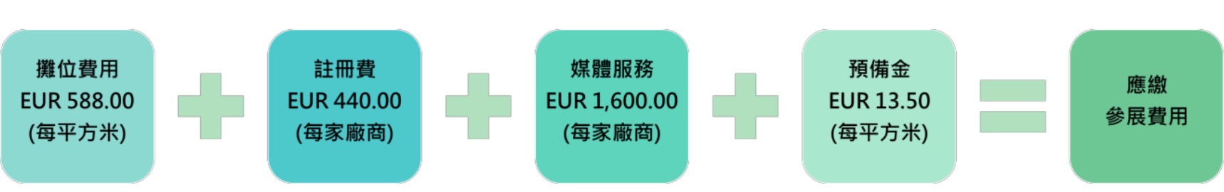 早鳥優惠 每平方米 EUR 588.00,適用於 2025 年 11 月 10 日前完成報名廠商